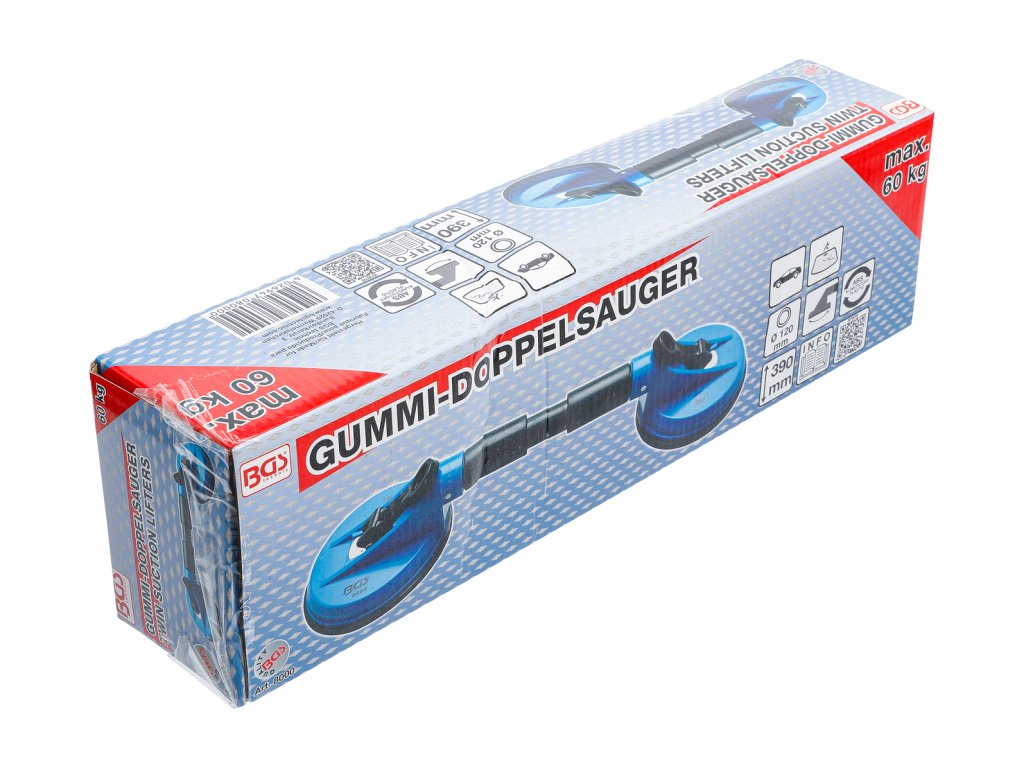 Přísavka na přenášení skla a jiných předmětů s hladkým povrchem, dvojitá, plastová, výkyvná, 2 x 120 mm – BGS technic 8000