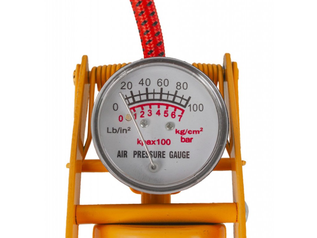 Kompaktní a jednoduchá pumpa pro huštění pneumatik na autě, motorce či jízdním kole, pro nafukování bazénů, matrací, balónů apod. Díky pedálu není třeba se při práci ohýbat, hadice je vybavena standardní koncovkou s pojistkou na autoventilek. Tlak lze sledovat na přehledném manometru.