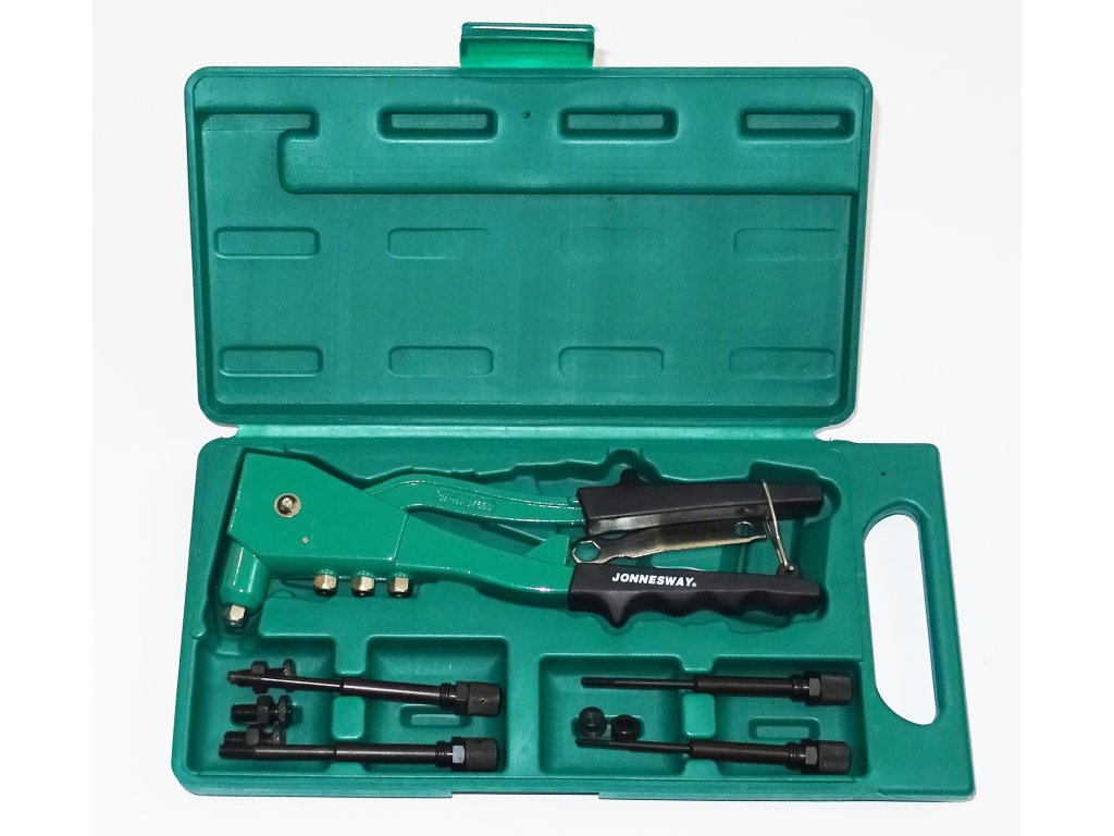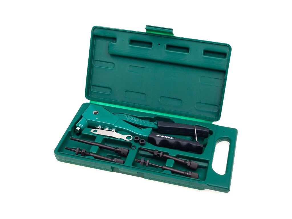 Profesionální nýtovací kleště na trhací (2,4-4,8 mm) a maticové (M3-M6) nýty, v plastové kazetě – JONNESWAY V1102
