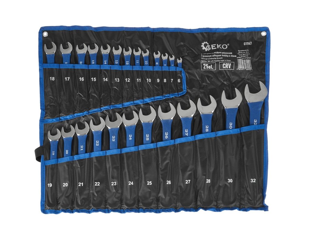 Očkoploché klíče, protiskluzové, 6-32 mm, 25 ks v látkovém obalu