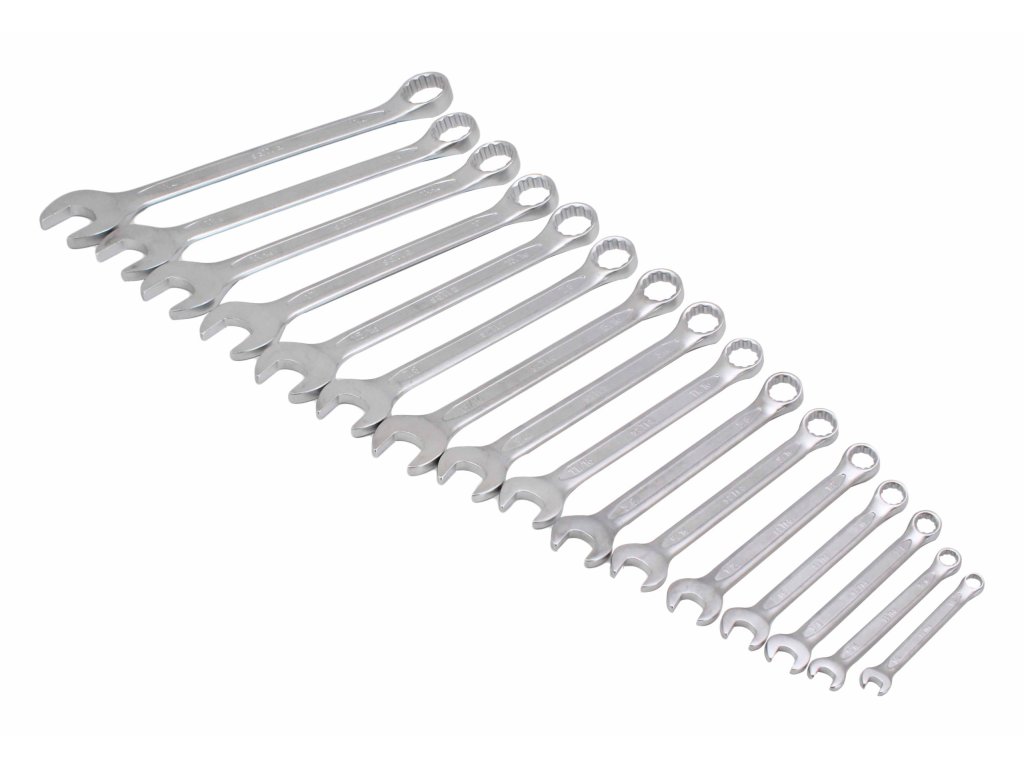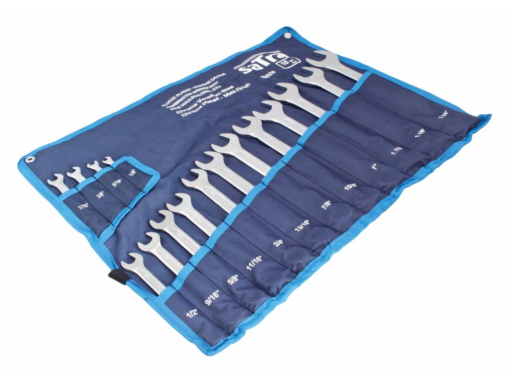 Souprava obsahuje rozměry: 1/4“ – 5/16“ – 3/8“ – 7/16“ – 1/2“ – 9/16“ – 5/8“ – 11/16“ – 3/4“ – 13/16“ – 7/8“ – 15/16“ – 1“ – 1-1/16“ – 1-1/8“ – 1-1/4“