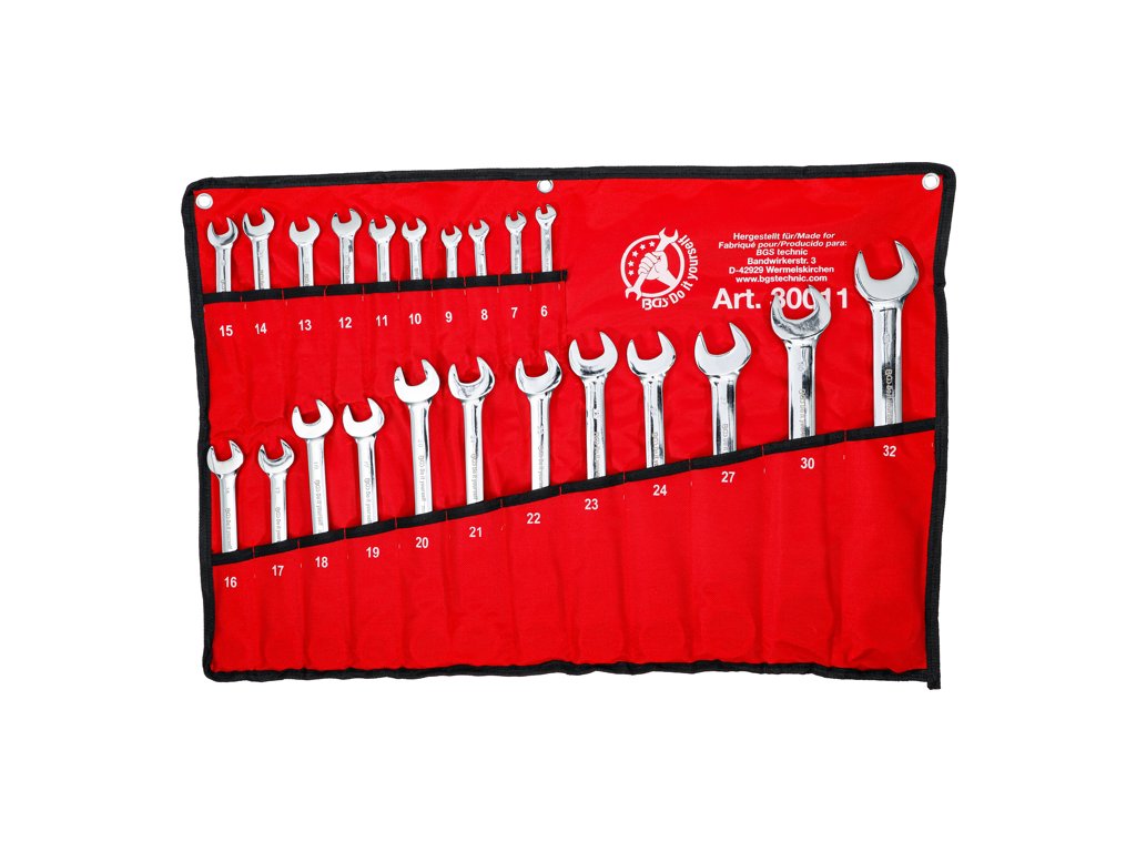 Sada oboustranných kloubových očkoplochých klíčů s ráčnou, rozměry 6 až 32 mm, 22 dílů v tetronovém obalu - BGS Do it yourself 30011
