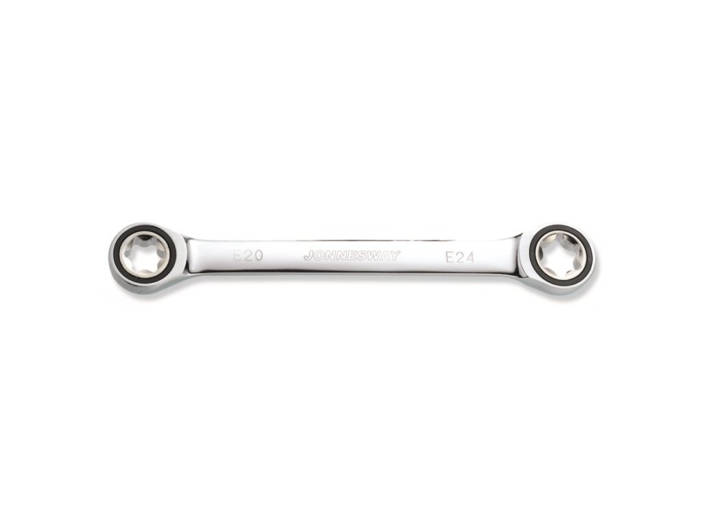 Očkové klíče profilu E-TORX (tzv. otočený torx), ráčnový mechanismus s 72 zuby, různé rozměry – JONNESWAY