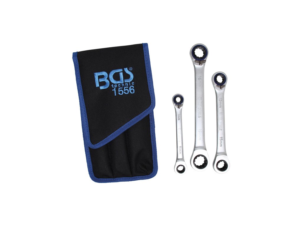 Sada očkových klíčů s přepínací ráčnou, vícevelikostní hlavy tzv. 4 v 1, rozměry 8 až 19 mm, 3 díly v tetronovém obalu - BGS technic 1556