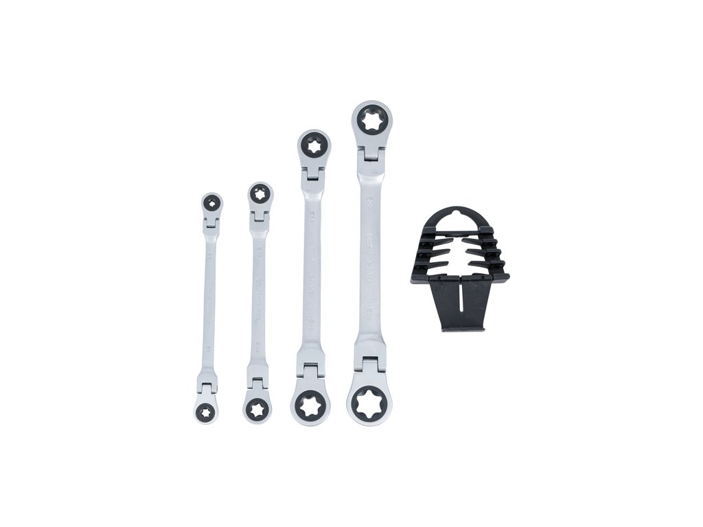 Očkové ráčnové klíče E-TORX E6-E24, s kloubem, sada 4 díly - BGS 71028