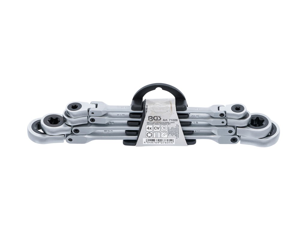 Sada kloubových očkových klíčů s ráčnou, profil E-TORX, rozměry E6 až E24, 4 díly v držáku - BGS technic 71028