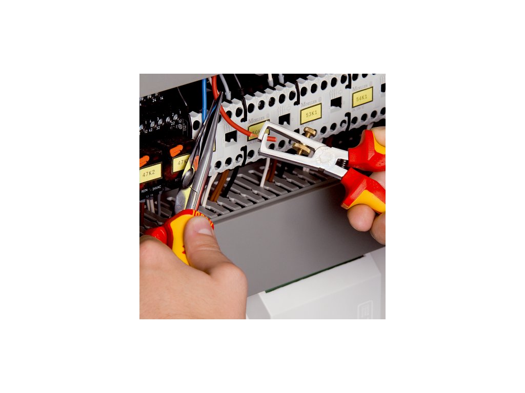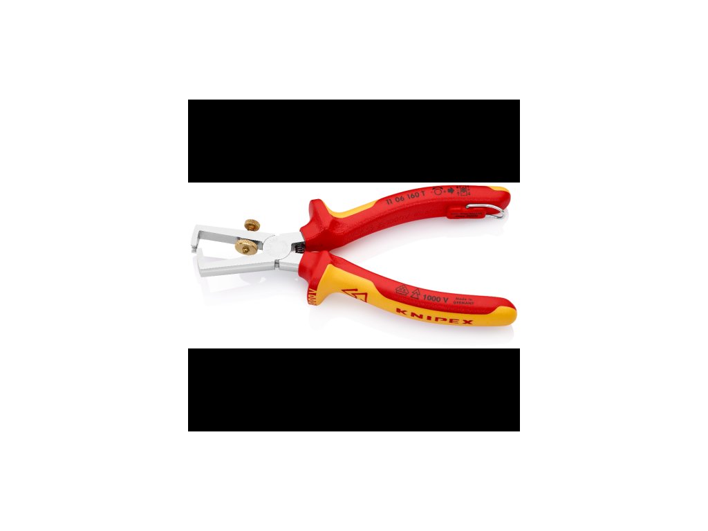 Profesionální odizolovací kleště, nastavitelné do 10 mm2, s dvousložkovou rukojetí a certifikací pro práci pod napětím do 1000 V - KNIPEX 11 06 160 T