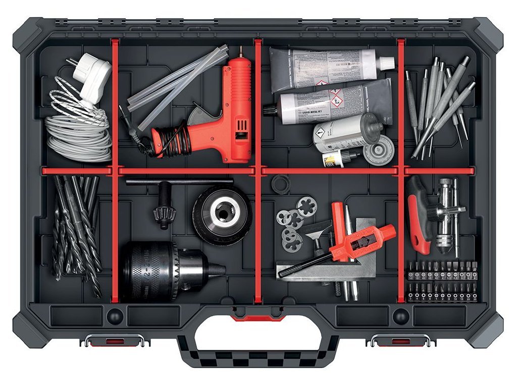Přepážky je v případě potřeby možné vyjmout a přizpůsobit si kufřík podle potřeb.
