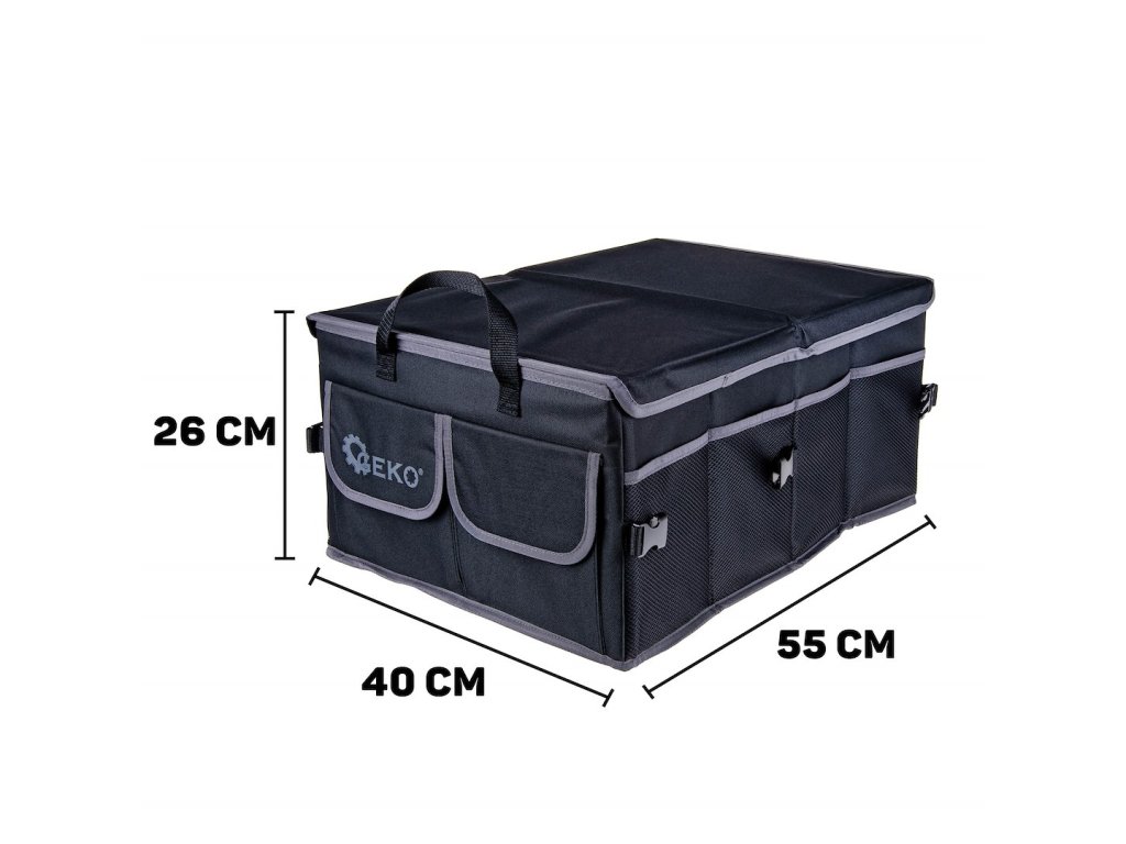 Vyztužený organizér do auta s víkem, skládací, rozměry 55 x 40 x 26 cm