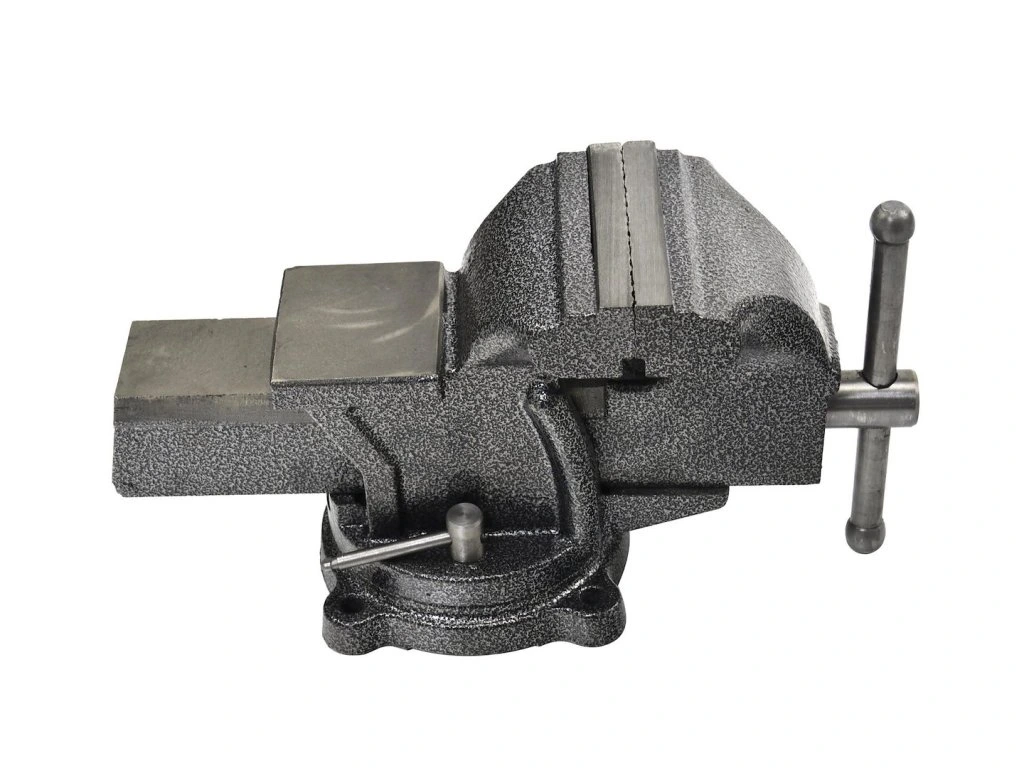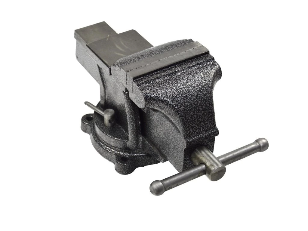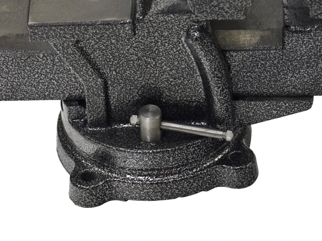 Svěrák na pracovní stůl s otočnou základnou a otočnou hlavou o 360°. Litinová konstrukce zajišťuje pevnost, odolnost a odolnost proti korozi.
