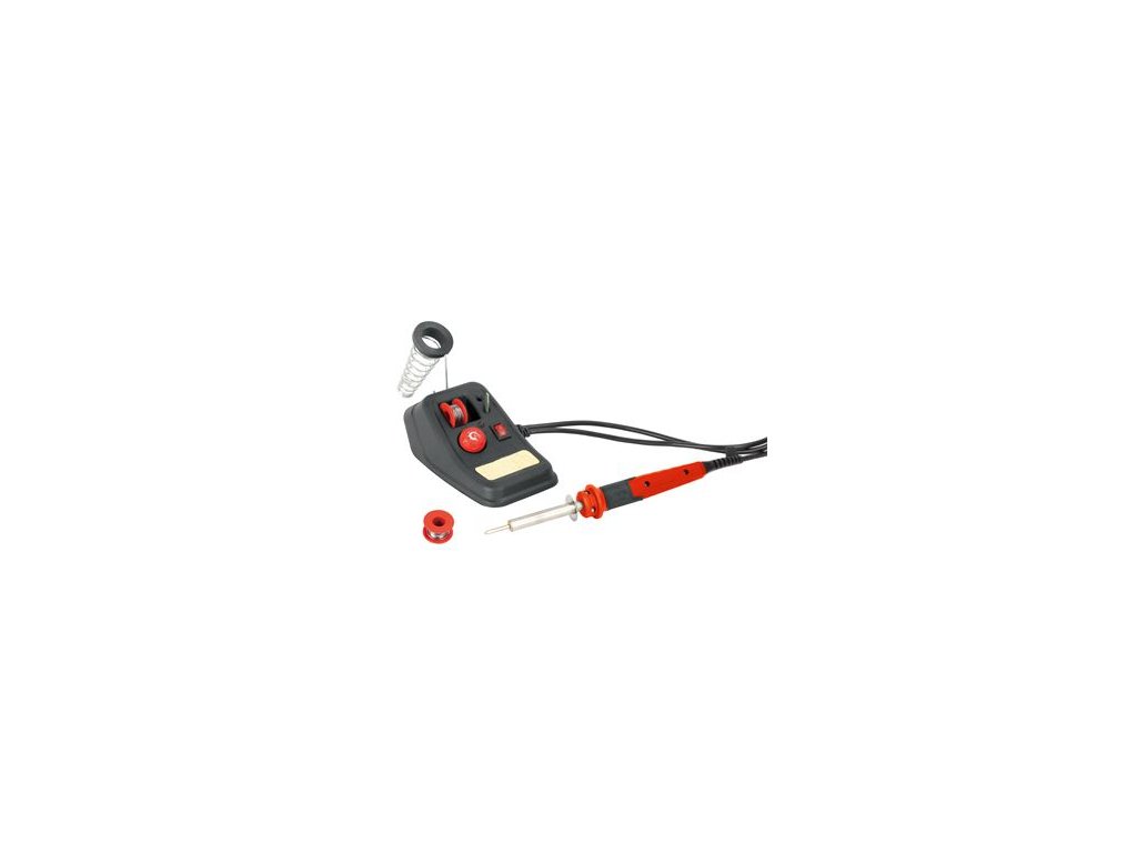 Dodáváno v sadě se 2 pájecími hroty (1x špičatý, 1x plochý) a 2 cívkami bezolovnaté elektronické pájky (1x průměru 1 mm, 1x průměru 1,5 mm).