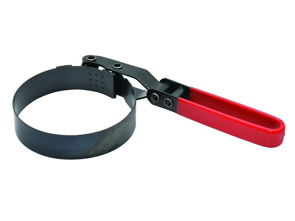 Páskový přípravek na olejové filtry s vinylovým krytím rukojeti a s kloubem má nastavitelný upínací pásek otočný o 180°, což zajišťuje optimální polohu upnutí i v stísněném prostoru. Rozsah upnutí olejových filtrů je 73 - 82,5 mm.