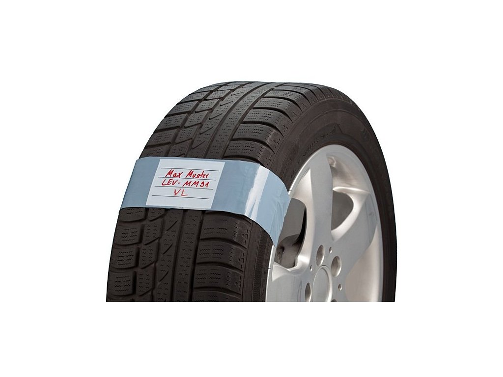 Polyetylenový pásek s identifikačním štítkem na kola pro označování kompletních kol při jejich sezónním skladování.