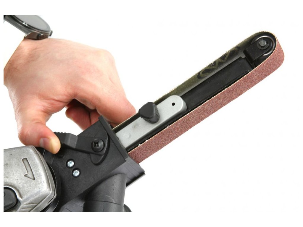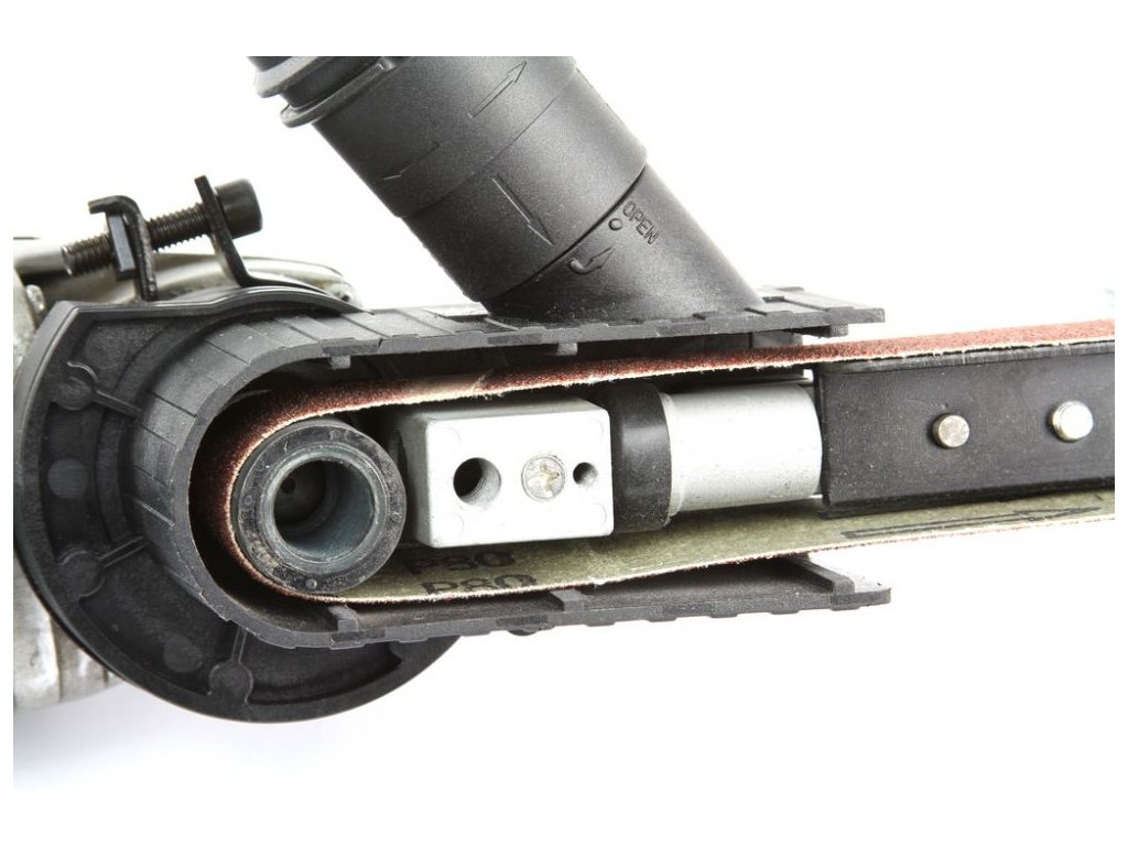 Nástavec umožňuje lepší vedení a přesnější broušení na těžko dostupných místech. Nástavec má zámek, který umožní vyměnit brusný pás za méně než minutu, a také knoflík pro napnutí pásu tak, aby při práci nespadl.
