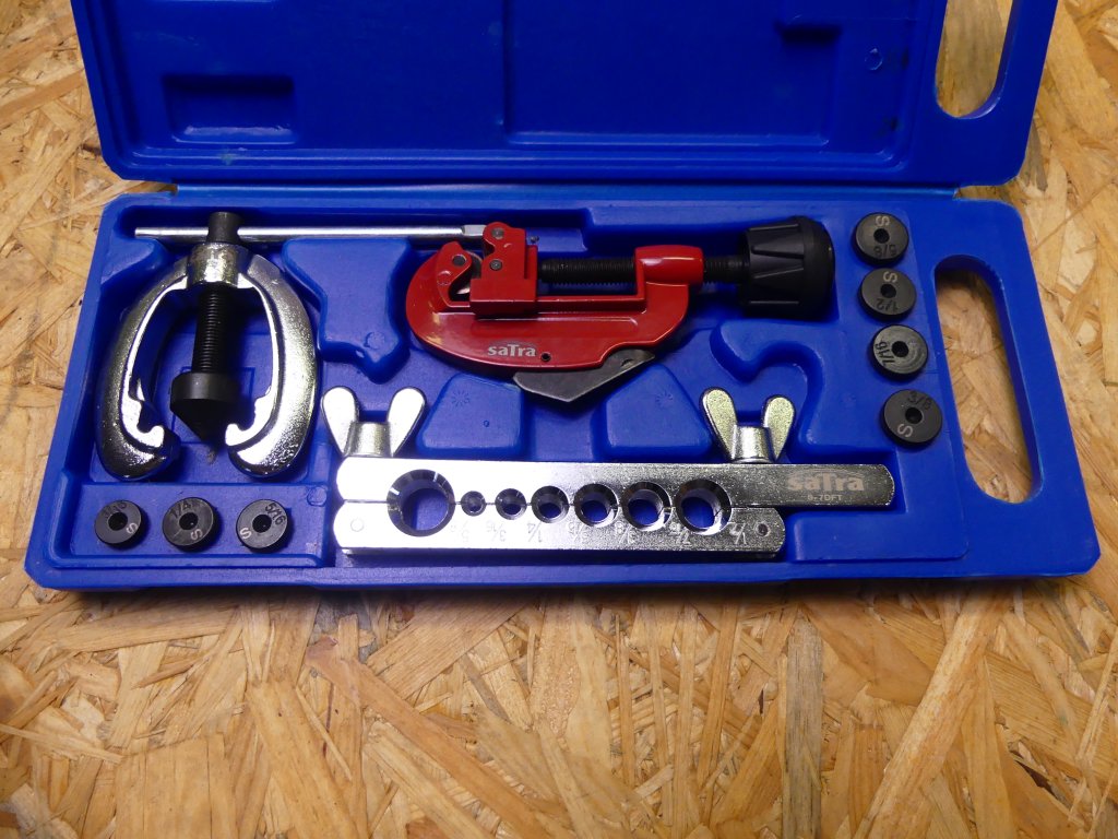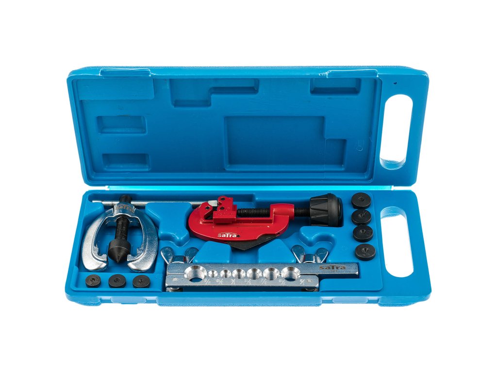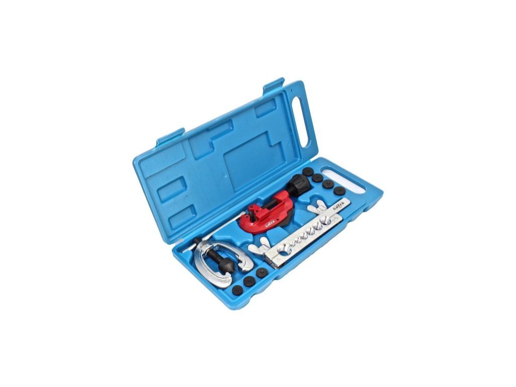 Pertlovací – lemovací sada na úpravu měděných a hliníkových brzdových trubek, rozsah 5–16 mm, v plastové krabičce – SATRA S-7DFT