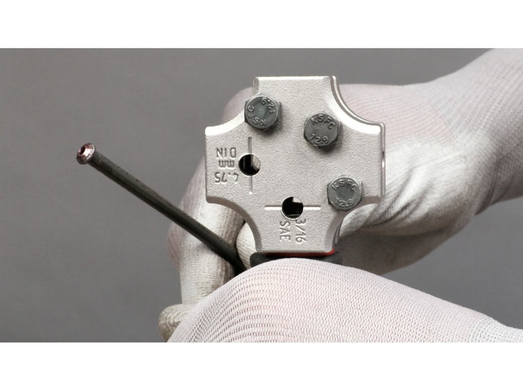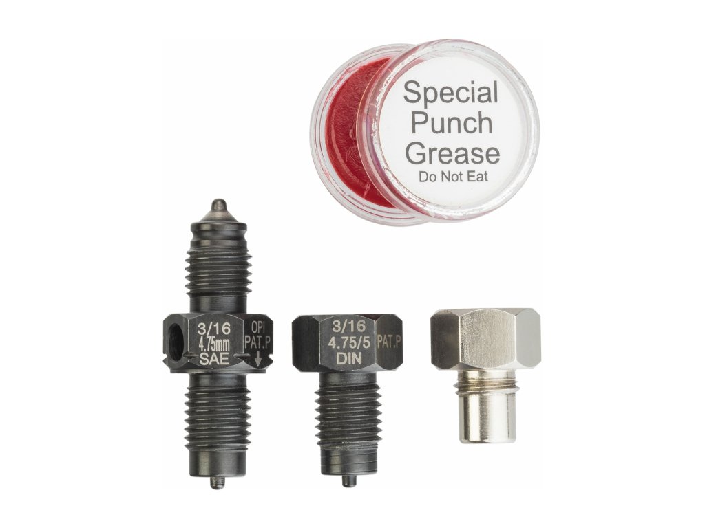 - Pertlovačka pro lemování vedení o průměru 4,75 mm podle standardů DIN (tzv. hříbek - nejobvyklejší profil) a SAE (tzv. trychtýř)