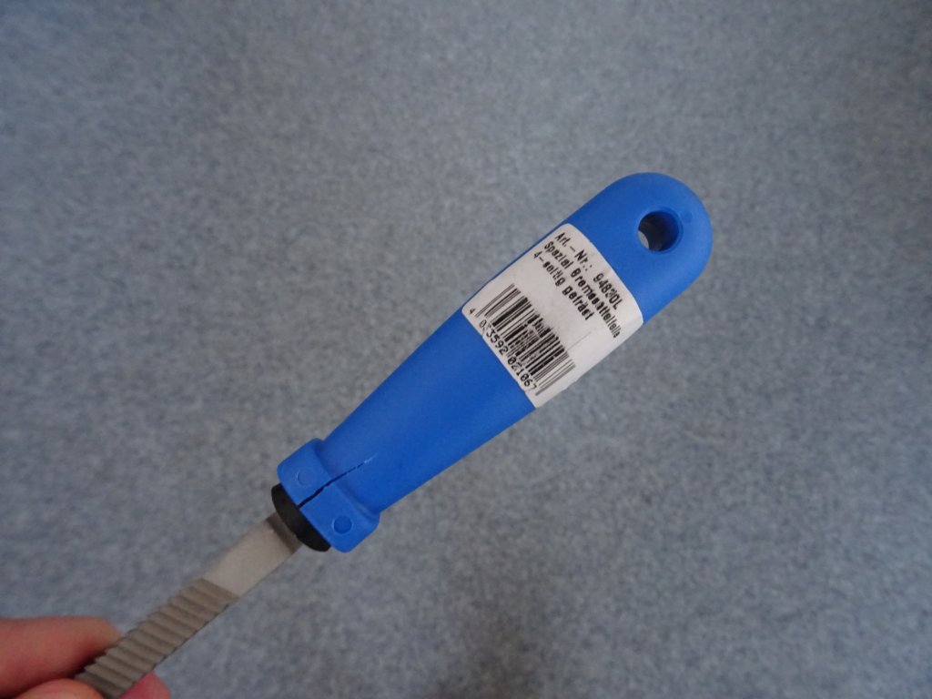 Bazarový produkt: pilník má naprasklou rukojeť (viz foto). Jinak je nepoužitý, pracovní plocha je ostrá.