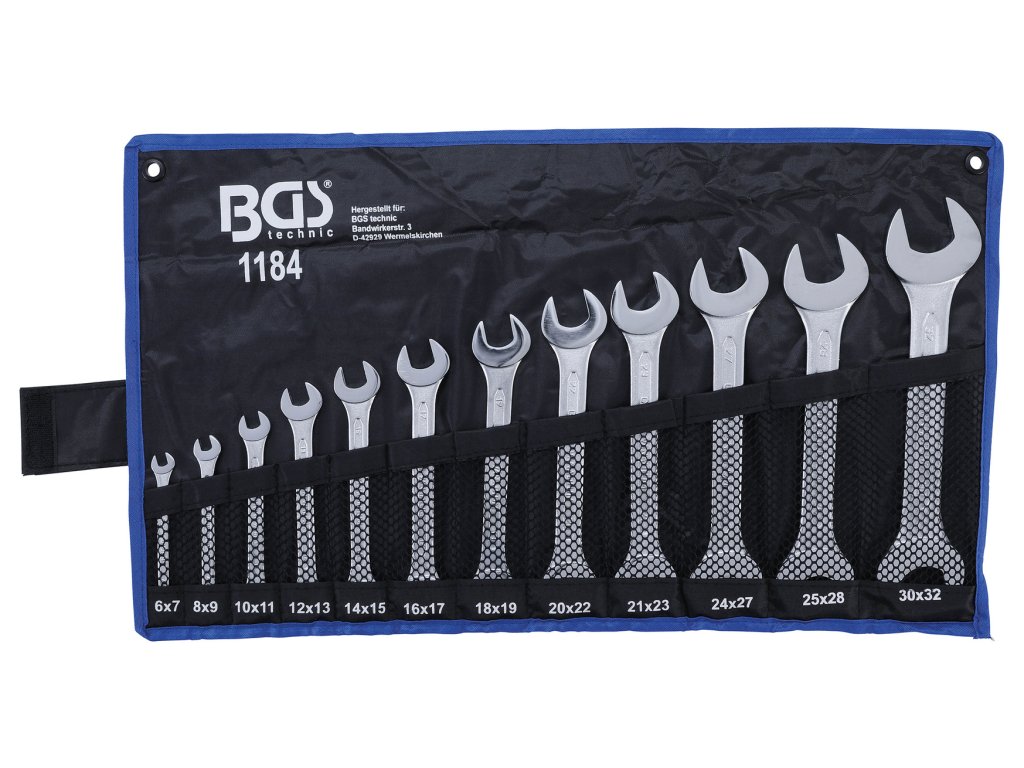 Sada plochých klíčů, velikosti 6×7 až 30×32 mm, onoustranné, celkem 12 ks – BGS technic 1184