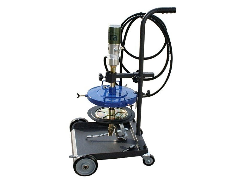 Spolehlivá pojízdná sada je vhodná pro sudy s mazivem o objemu 20-30 l a uplatní se např. v autoservisu nebo průmyslovém odvětví. Souprava využívá stlačený vzduch k přečerpání olejů nebo maziv z jednoho místa na druhé.