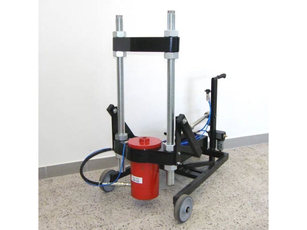 Pneumaticko-hydraulický lis na svislé čepy nákladních vozidel, 80 t, pojízdný na vozíku