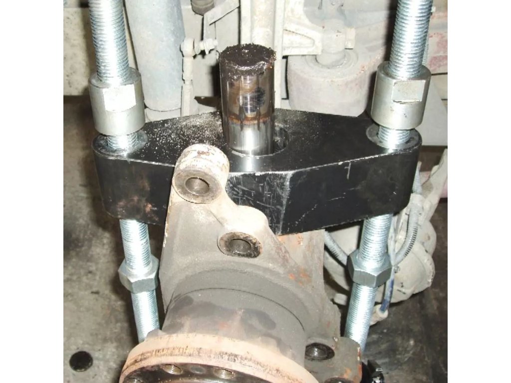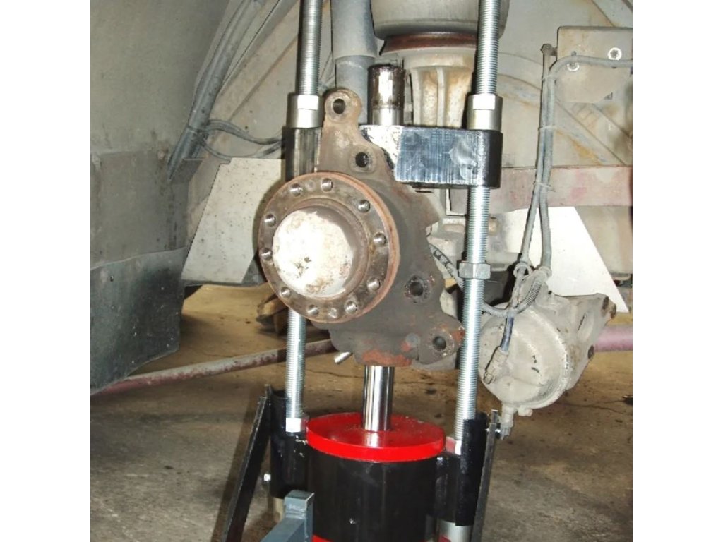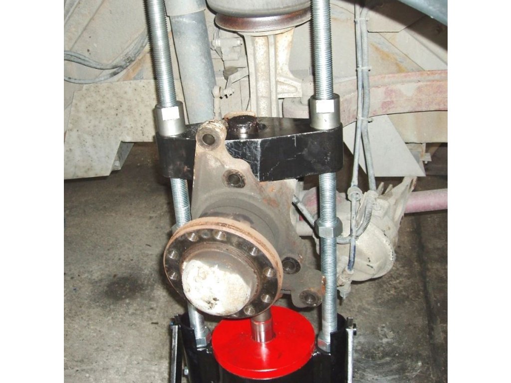 Zařízení je určeno k vylisování svislých čepů nákladních automobilů a autobusů přímo na nápravě vozu. Toto zařízení výrazně urychlí a usnadní práci.
