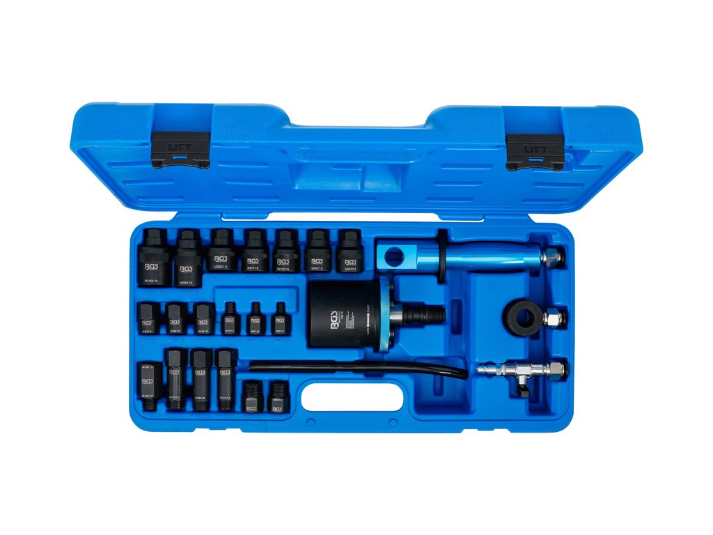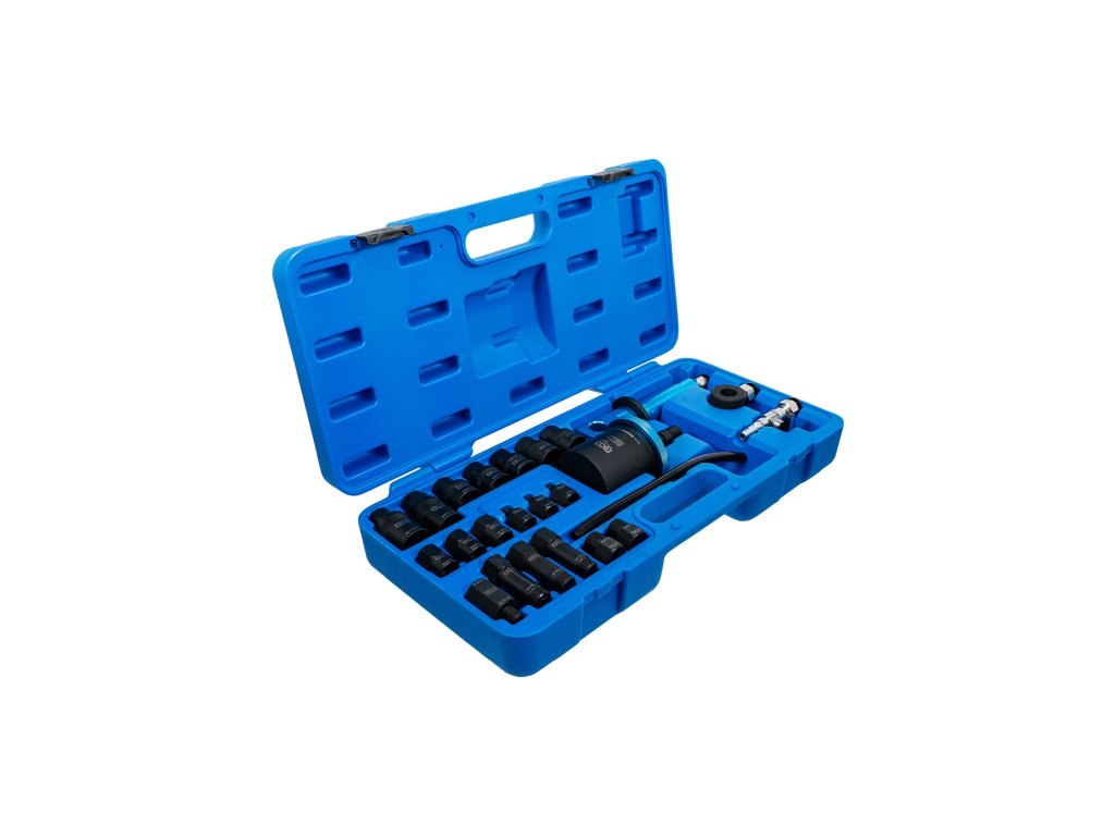 Rázový nástroj na demontáž zapečených dieselových vstřikovačů, pneumatický, sada 24 dílů v plastovém kufru - BGS technic 74512