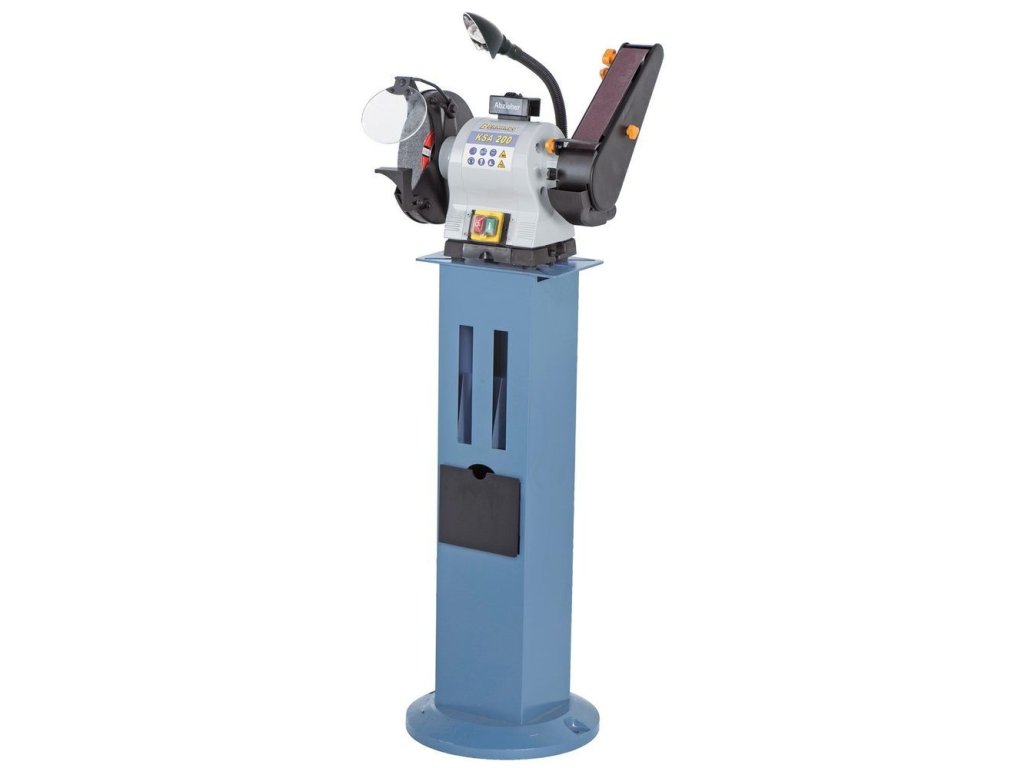 Stojan na stolní brusky řady DSA, pevná výška 84 cm, s prostory na brusné kotouče a nářadí – Bernardo model C