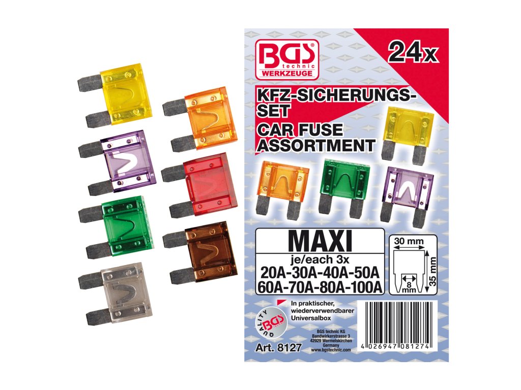 Pojistky nožové MAXI pro užitková vozidla 24ks (20-100A) - BGS 81271