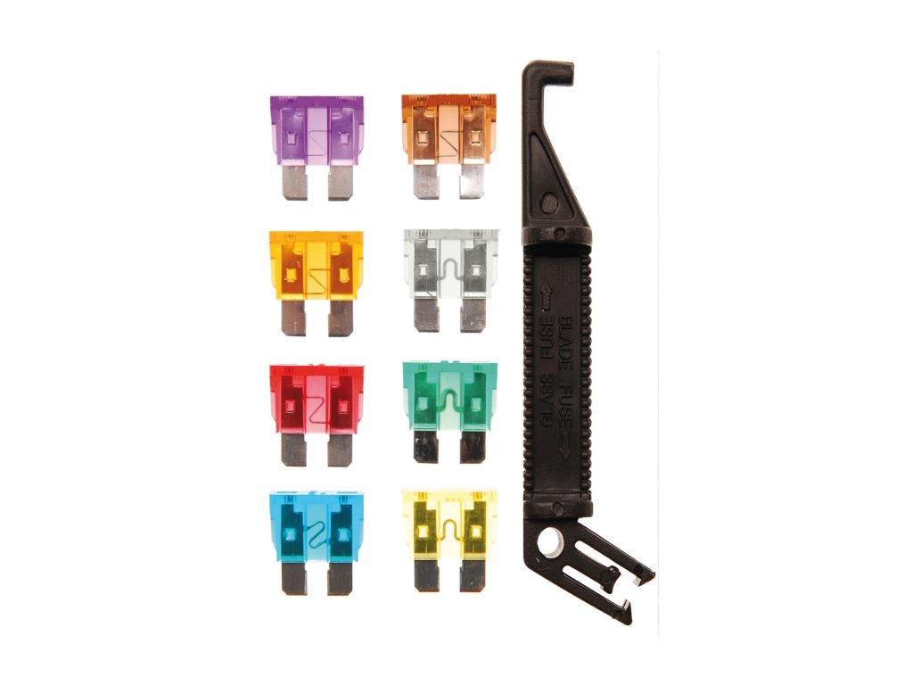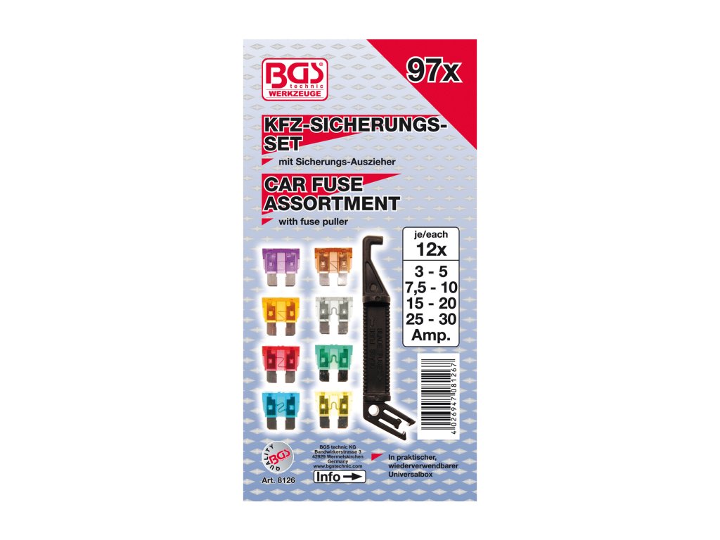 Pojistky ploché nožové, rozsah 3 až 30 A, sada 97 ks – BGS 8126