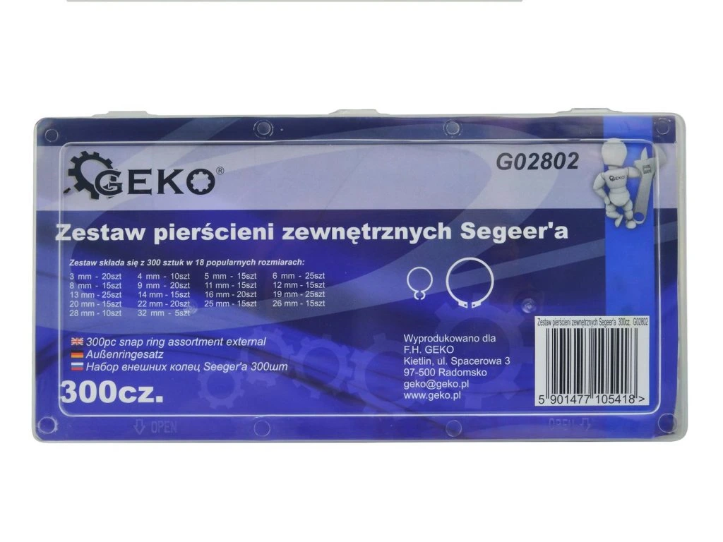 Pojistné kroužky sada 300ks, R1-R19, pr. 3 -32mm, - GEKO