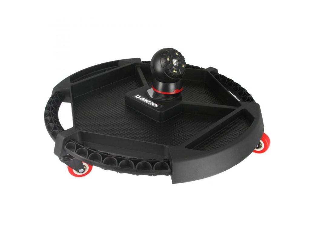 Mimořádně užitečná vanička do dílny, kterou můžeme zajet pod auto a vzít si s sebou potřebné vybavení a doplňky, a navíc prostor v případě špatně dostupných a tmavých míst osvětlit 360stupňovou LED lampou upevněnou na magnetu.