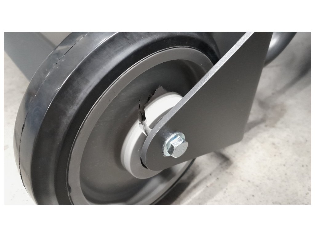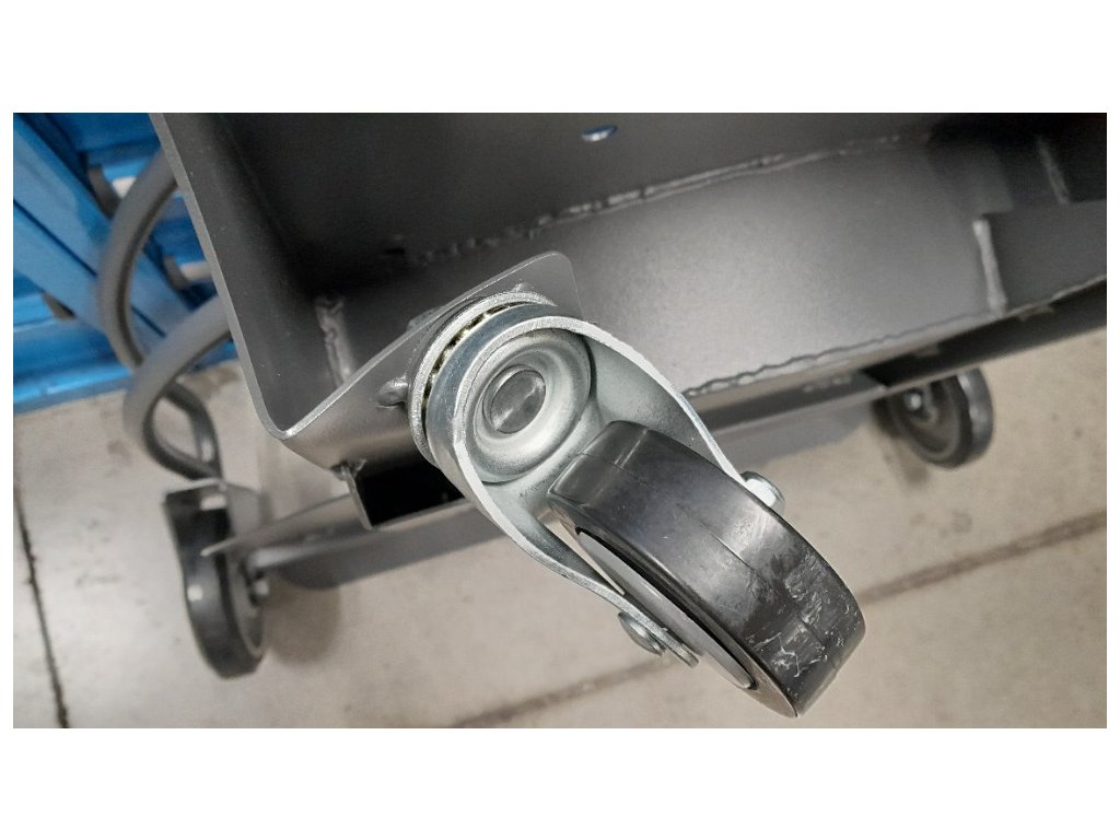 Pohodlné převážení díky velkým kolečkům (dvě jsou řiditelná) a masivní rukojeti. Bytelná kovová konstrukce vydrží i náročné zacházení.