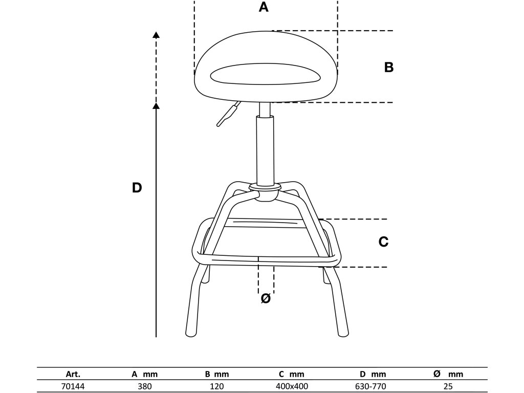 Pojízdná židle s opěrkou, otočná, výška sedla 630-770 mm, opěrka 120 mm, max. zatížení 150 kg - BGS 70144.