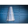 Praktický držák s oddělenou přihrádkou pro každý klíč, poskytuje místo pro 14 očkových, plochých nebo očkoplochých klíčů.