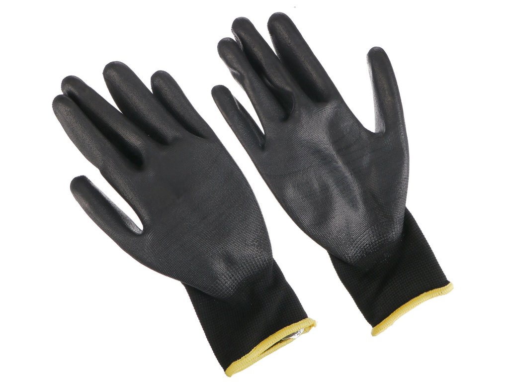 Pracovní rukavice navržené pro různé pracovní úkoly, které vyžadují ochranu rukou před fyzickým namáháním. Jsou vyrobené z polyesteru, což je pohodlný a lehký materiál a polomáčené v odolném polyuretanu, který zajistí protiskluzový úchop a zároveň zachová pohyblivost a citlivost rukou . Rukavice jsou k dispozici v různých velikostech.