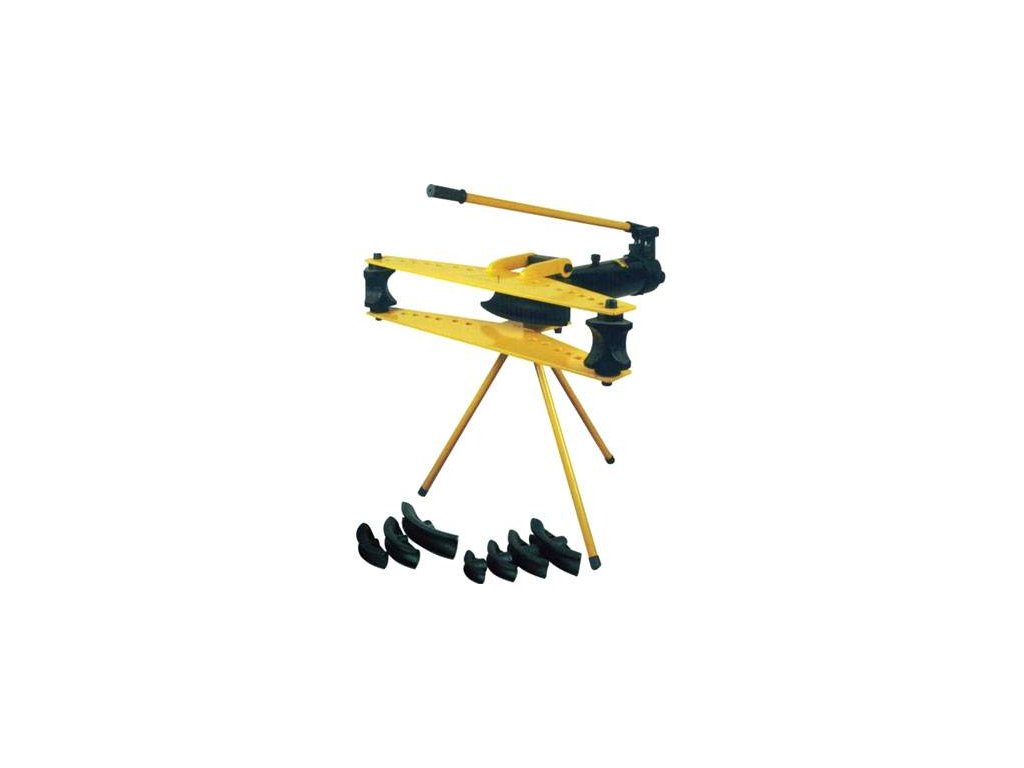 Přenosná hydraulická ohýbačka trubek se stojanem se používá pro ohýbání železných trubek, nerezových trubek, trubek z barevných kovů apod. Skládá se z hydraulické pracovní jednotky/válce, ovládací hydraulické pumpy s pákou, držáku rolen dvou rolen, sady tvarových opěrek a třínožičkového stojanu. Vyznačuje se tuhou konstrukcí a velkou ohýbací silou 9 t. Charakterizuje ji i snadná a rychlá vyměnitelnost tvarových opěrek pro různé průměry trubek. Ohýbání trubek se provádí bez velké fyzické námahy. Kvalitní hydraulika a robustní konstrukční provedení zajišťují vysokou provozní spolehlivost a životnost bez nutnosti náročnější údržby.