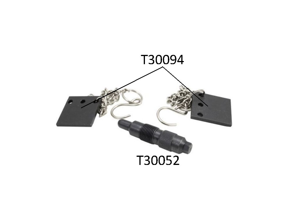 Rozvodový přípravek vhodný pro vznětové (dieselové) motory Volkswagen group (Audi, Škoda, Volkswagen) 2.5L TDi V6 poháněné řemenem od roku 1997, sada obsahuje pojistný kolík horní úvrati klikové hřídele a destičky pro nastavení vačkového hřídele.