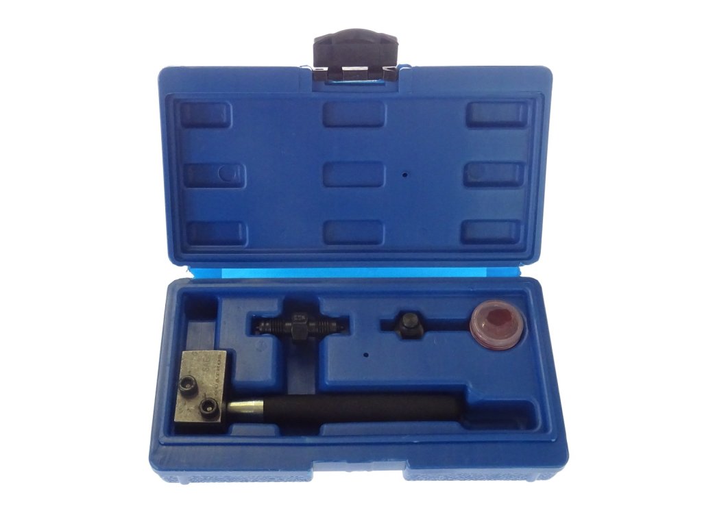 Pertlovací sada na brzdové trubky („pertlovačka“): přípravek na úpravu konců brzdového potrubí (pertlování/lemování); v plastovém pouzdře – QUATROS QS70094