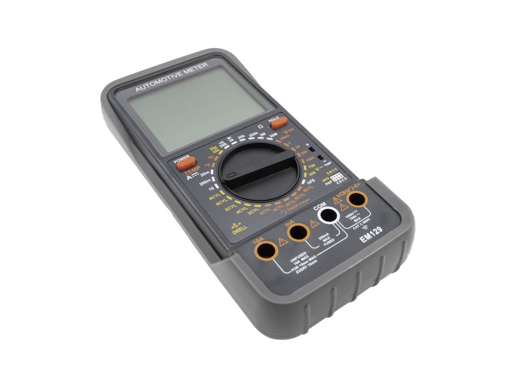 Víceúčelový digitální měřicí přístroj/minimotortester je praktickou pomůckou pro automechaniky i autoelektrikáře. Má velký LCD displej.