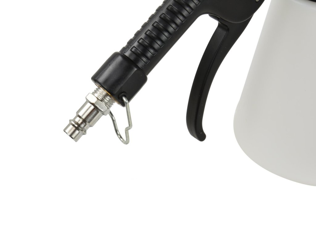 Základem této sady je vakuová odsávačka s 1/4“ závitem pro připojení vzduchu. Odsávačka se našroubuje na 1 l nádobu (záchyt odsáté kapaliny), ze které vede průhledná silikonová hadička, díky které lze snadno sledovat proces výměny kapaliny nebo odvzdušňování. Na jejím konci je univerzální gumový adaptér pro připojení odsávačky na odvzdušňovací šroub (tzv. nipl), který pasuje na odvzdušňovací šrouby všech velikostí, a díky svojí poddajnosti spoj dokonale utěsní. Páka pro spuštění podtlaku (odsávání) má aretaci pro kontinuální odsávání.