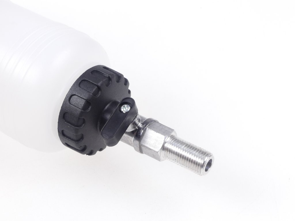 Dále je součástí této sady plnící láhev o objemu 0,75 l s uzavíracím ventilem a čtyřmi různými adaptéry pro upevnění na různé nádržky s brzdovou kapalinou. Tato láhev se naplní novou kapalinou, s uzavřeným ventilem a redukcí vhodné velikosti se usadí na nádržku s brzdovou kapalinou, a ventil se otevře. Při odsávání staré kapaliny se nádržka automaticky doplňuje z plnící lahve.