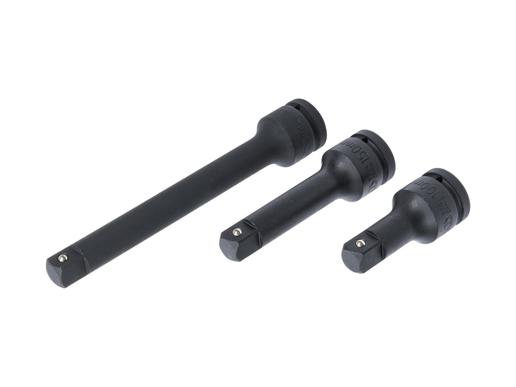 Prodlužovací nástavce - prodloužení 3/4“, úderová pro rázové utahováky, délky 10, 15 a 25 cm, sada 3 díly - BGS technic 8840