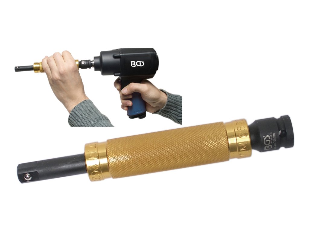 Není to jen obyčejné 200 mm prodloužení, ale současně dodatečná rukojeť, takže je možné držet těžké úderové utahováky oběma rukama bez únavy.