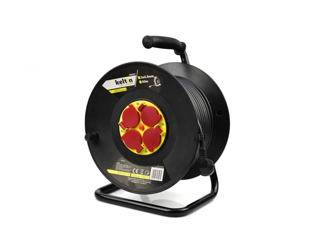 Prodlužovací kabel na bubnu 4 zásuvky 50m 3x2,5mm2, plastový KELTIN