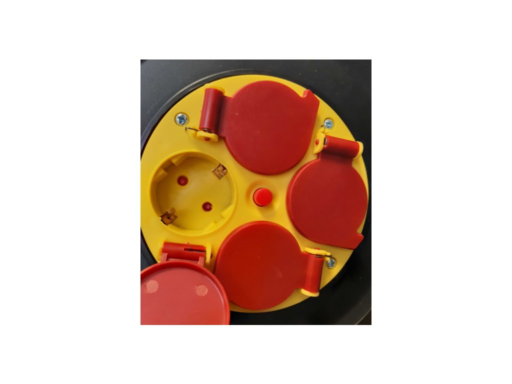 Prodlužovací kabel na plastovém bubnu se čtyřmi zásuvkami s dětskou a tepelnou pojistkou, je ideální pro každý dům, zahradu, dílnu a staveniště.