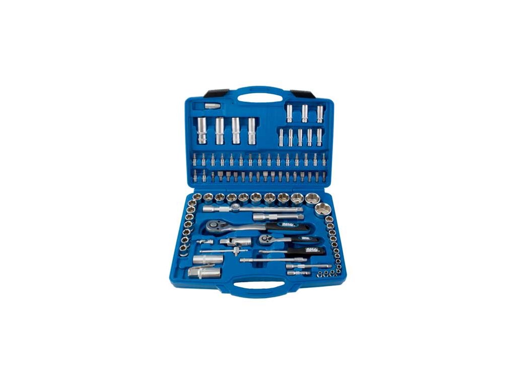 Gola sada s nářadím v metrických rozměrech, vodicí 4hrany 1/4“ a 1/2“, 94 dílů v plastovém kufříku – MAGG 341094PR
