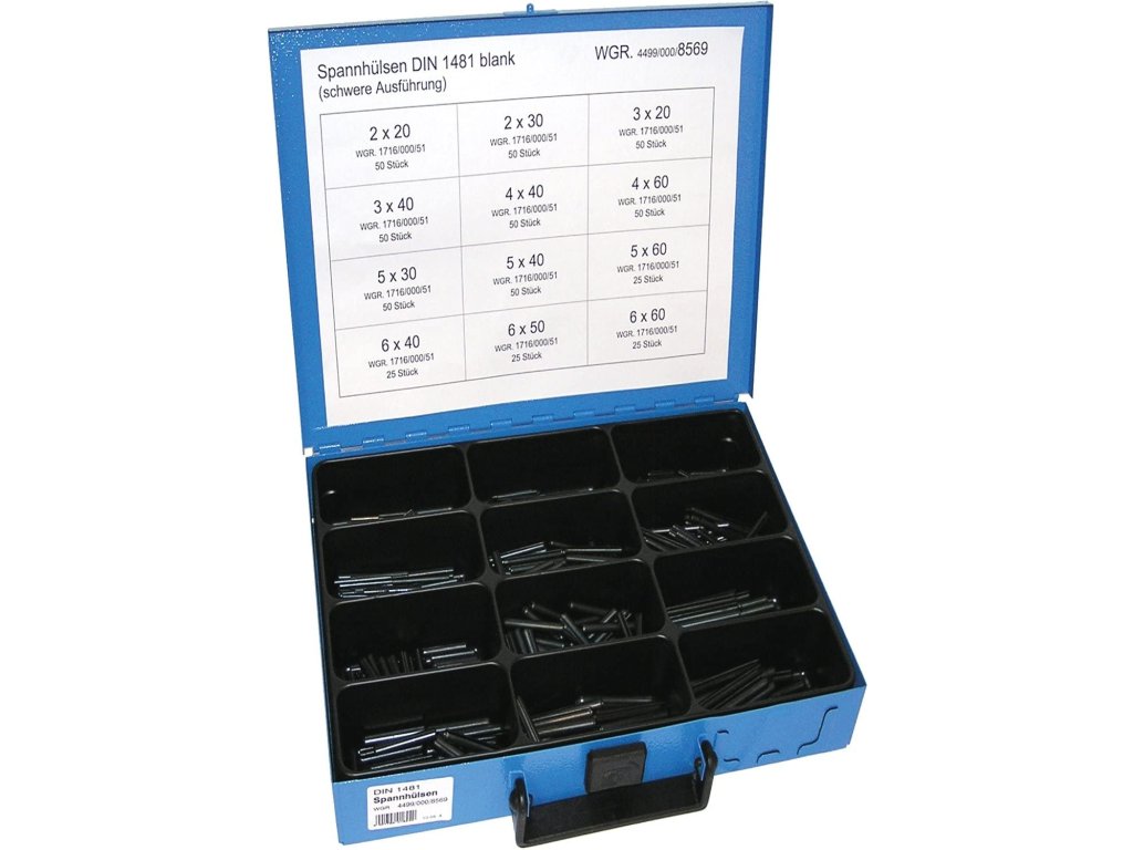 Pružné kolíky s podélnou drážkou (výřezem), velká sada 500 kusů v plechovém kufříku – Dresselhaus 44990008569