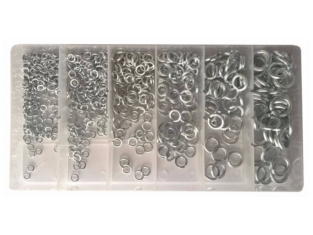 Sada bezpečnostních podložek – pérovek, rozměry M3-M10, 800 ks v plastové krabičce s přihrádkami