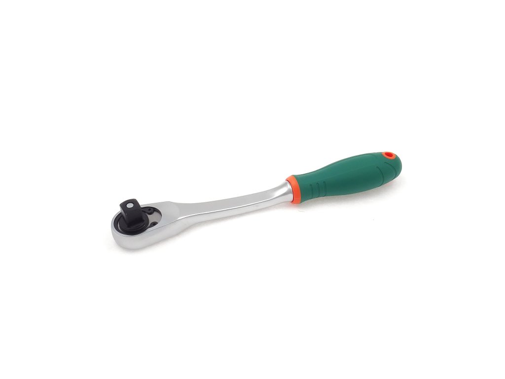 Ráčna je vhodná pro použití ve stísněných prostorech. Díky ztenčenému profilu je možné s ní povolovat nebo utahovat šrouby i tam, ked nelze prostrčit běžné ráčny. „Quick-release“ tlačítko na rychlé odepnutí hlavice (ořechu) z ráčny. Díky aretační kuličce se hlavice neuvolní samovolně z ráčny.