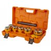 Určeno pro prořezávání nových či obnovu starších závitů. Obsahuje celkem 6 ks závitníků vyrobené z vysoce kvalitního odolného materiálu (9CRSI) o rozměrech 1/4", 3/8", 1/2", 3/4", 1", 1-1/4" společně s příslušenstvím.